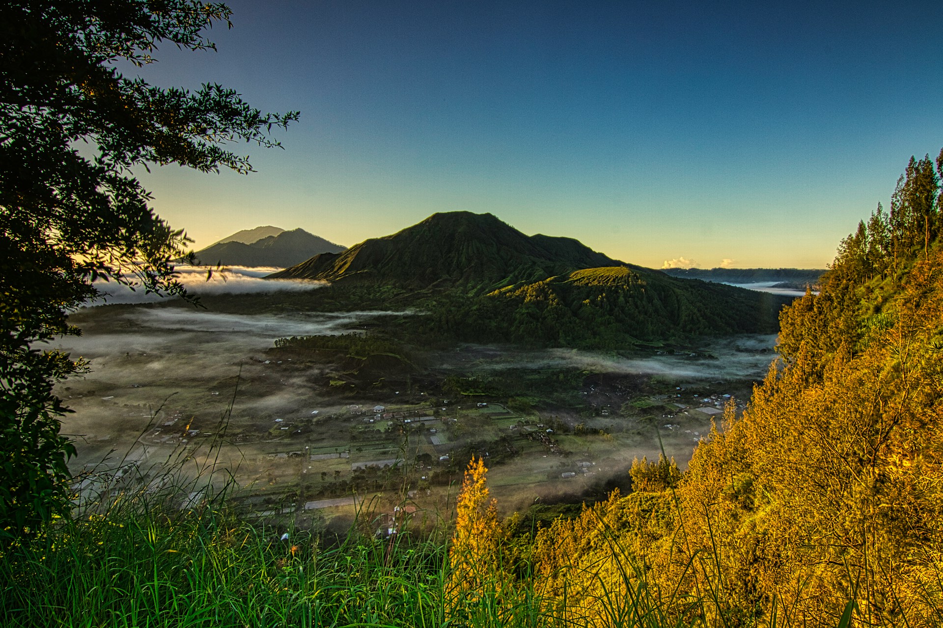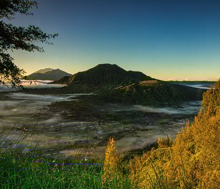 Nestled in the highlands of Kintamani, Bangli, Pinggan Village is one of Bali’s most breathtaking sunrise viewpoints. This hidden gem offers a panoramic view of Mount Batur, Mount Agung, and Mount Abang, often surrounded by a mystical sea of clouds. The combination of rolling hills, misty landscapes, and golden sunlight creates an otherworldly, dreamlike atmosphere, making it a must-visit for photographers and nature lovers.