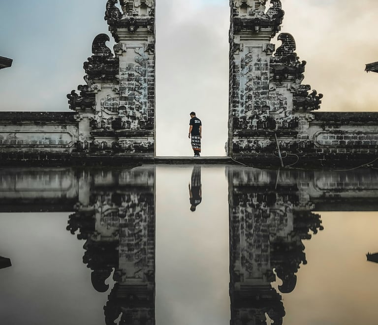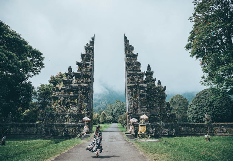 Lempuyang Temple, famously known as the Gates of Heaven, is one of Bali’s most iconic spiritual and Instagrammable locations. Perched on the slopes of Mount Lempuyang in East Bali, this ancient Hindu temple offers a breathtaking view of the sky-framing Mount Agung, Bali’s tallest volcano. The towering Candi Bentar (split gateway) creates an illusion of a "gateway to the heavens," making it a favorite spot for stunning, mirror-like reflection photos.