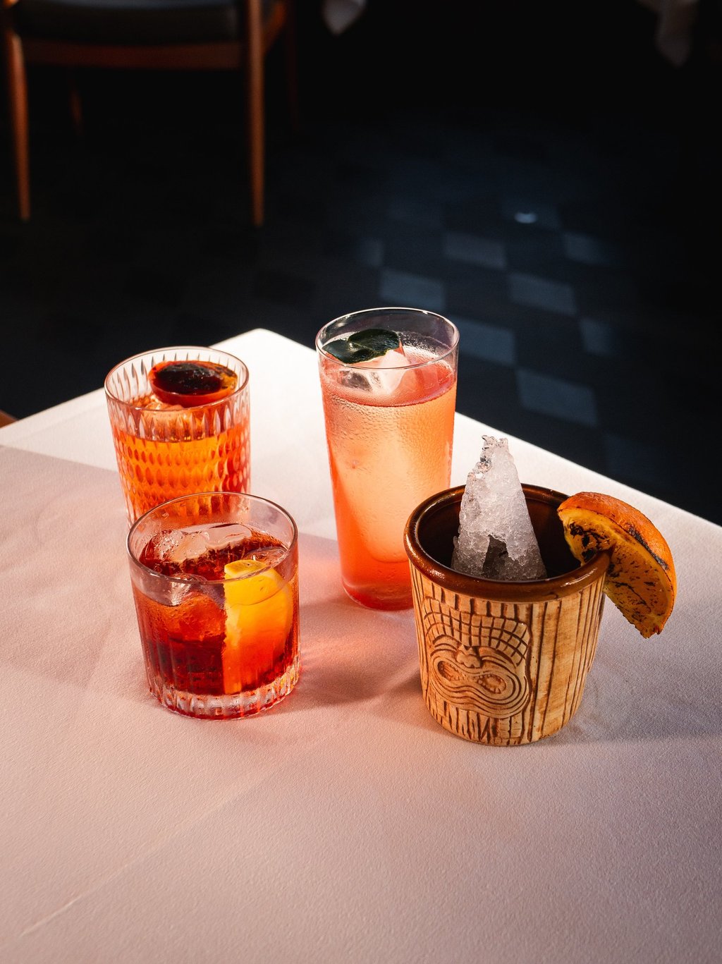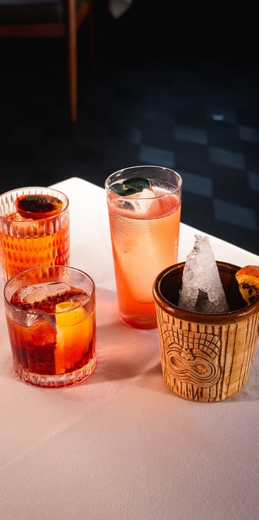 Amici presents three sophisticated interpretations of the Negroni. Guaiava Americano with tropical guava, Tropiconi with pineapple honey infused vermouth, and Pioggia di Settembre with Campari, gin, grapes, apple shrub, carrot cordial, elderflower, and lemon. Each is priced at IDR 185K and offers a refined balance of Italian tradition and tropical flair. With its elegant setting in the heart of Seminyak, Amici delivers a Negroni experience that is bold, layered, and romantic.